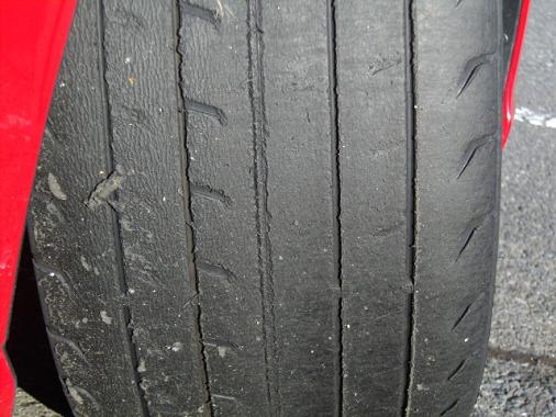 4月から使ってきたクムホV700は「溝が無くなっても喰う」という話を聞いていましたが、写真のようにタイヤのカギ形の溝がなくなるとさすがに終わりのようです。 9月にタイムが伸びなかったのも減衰を弄って遊んでいたのが原因ではなかった模様。。。 V700は「一日通してタイム差が出にくいタイヤ」というイメージを持っていましたが、この日の各ヒートのベストラップの差は0.429秒で大きくタイムが落ちてしまいました。(ちなみに、昨日と同じくらいの気温だった4月のベストラップの差は0.110秒でした)