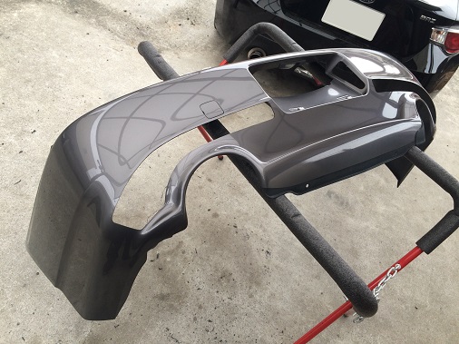 リアバンパーのダクト加工やその他もろもろの作業をしています。
