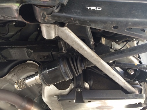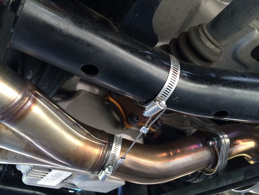 固定用のバンドを製作しました。 固定と言っても完全に固定するのではなく、マフラーがデフケース方向に動かないようにしました。 実際に手でマフラーを揺すってみると、デフケースと接触することはありませんでしたよ♪