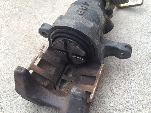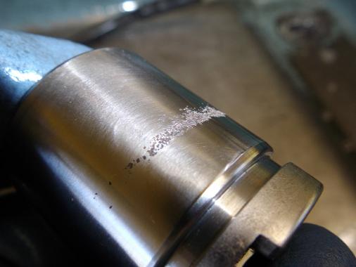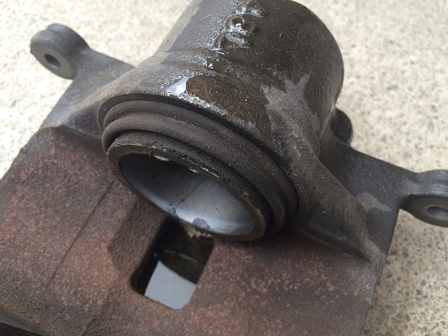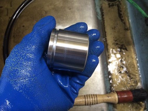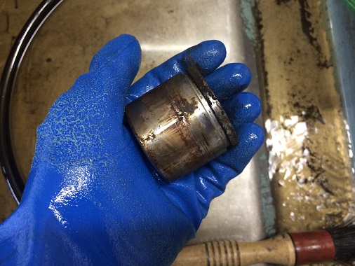 ダストブーツが破れたまま使っていると、雨水が入ってピストンにサビが発生することがあります。 サビが発生するとピストン表面に凹凸ができてしまい、ピストンを再使用することが出来なくなってしまうので要注意です。(写真は他のクルマのピストン)