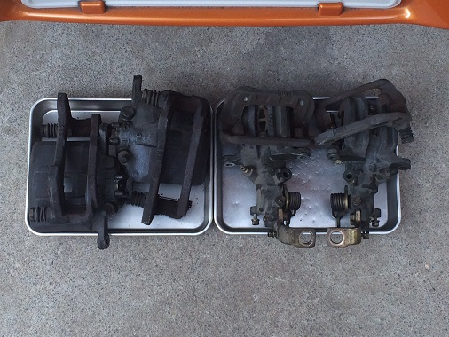 使い込んだ感のあるキャリパーですが、前後共にダストブーツは破れていませんでした。 S2000のダストブーツは、すぐに破れてしまう 86/BRZのダストブーツとは明らかに材質が違う感じがします。 S2000はゴムっぽくて、86/BRZはプラスチックっぽいと言えばイメージしやすいでしょうか。