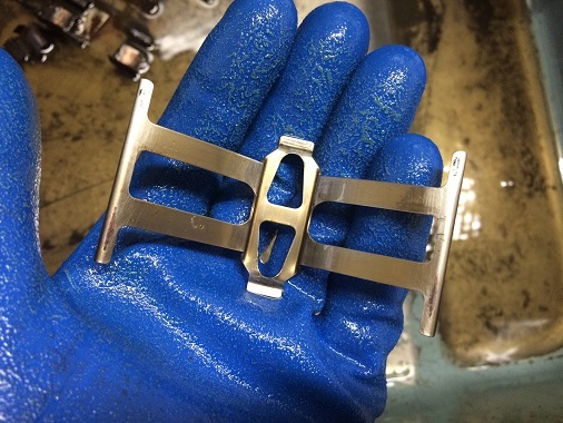 頑固な汚れもしっかりと洗い流します。 メッキ部に擦れた跡が若干見受けられますが、問題なしと判断し再使用します。