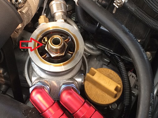このクルマには Arrowsのオイルストッパーが装着されていました。 オイルストッパーは、オイルフィルターの周り止めが本来の役目ですが・・・サンドイッチタイプのオイルブロックを使っている場合、センターボルトの周り止めの役割も果たします。 手前味噌になってしまいますが、危機一髪のところで火災を逃れたのはオイルトッパーのお陰ですね。。。