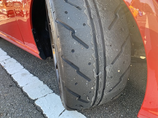 写真は 11分×4ヒート走行後の状態です。 うわさで聞くほど摩耗スピードは速くなさそうです。 練習用タイヤとしては十分に「アリ」ですね♪