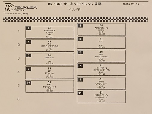 決勝は、予選 2位の ZN6が棄権・リタイヤ。 予選 3位の ZN6とは 1.473秒のタイム差なので、何もなければ問題なく 6年連続優勝となるはずでした。。。