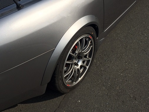 それにしても、素晴らしいフィッティング♪ 元のフェンダーはカットしてますので、タイヤ&ホイールをさらに外側へ出すことが可能になりましたよ。 17年前に登場した S2000も、まだまだ現役って感じですね♪