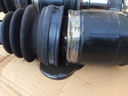ドラシャインボードブーツからグリスが漏れていました。(涙) ドラシャがグリスで湿っていたり、飛び散ったグリスがサブフレームに付着しています。 今までの経験上、中のグリスはこんな感じ↓のはず。。。