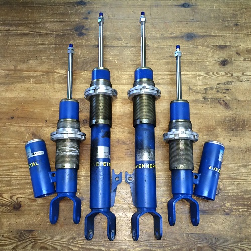 S2000の車高調がオーバーホールから帰ってきました。 写真では汚れているように見えますが、クリーニングもちゃんとしてありますよ。(別途料金が掛かりますが、ケースの再塗装やアジャスターの交換も可能です。)