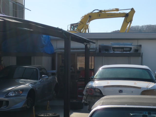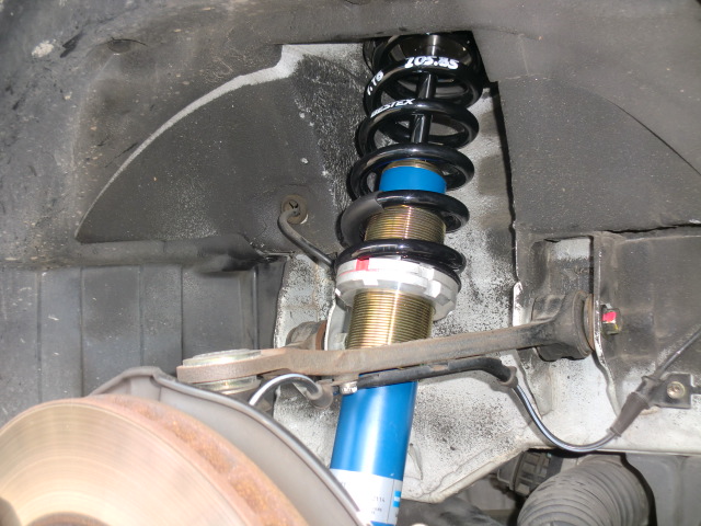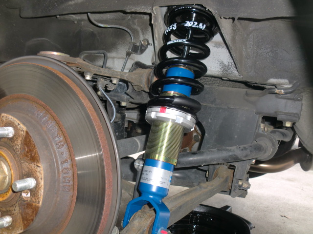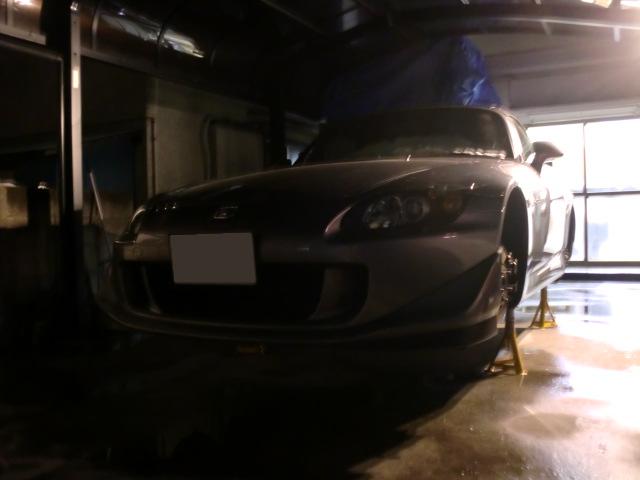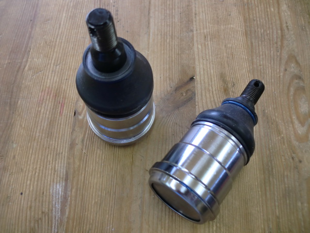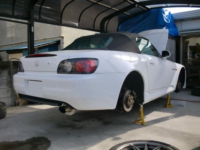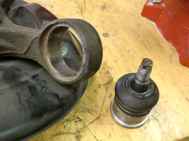 増○号の続きですよ。 油圧プレスでリアの純正ボールジョイントを抜いて、SPOONさんのロールセンターアジャスターを圧入します。