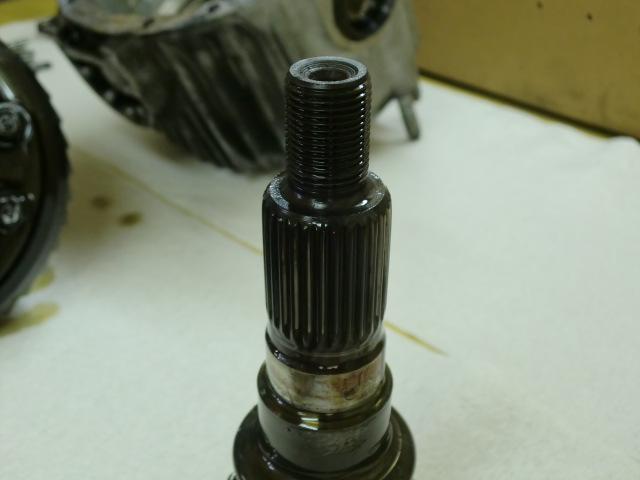 オイル漏れの原因となっているピニオンギアとコンパニオンフランジのスプライン部分。 この隙間からオイルが漏っているとうことは、はめ合いが悪い(間隙が大きい)ということなのかな? う~ん。。。 漏れたオイルが原因でまたナットが緩んでも困るので、秘密の対策を施しておきましたよ。