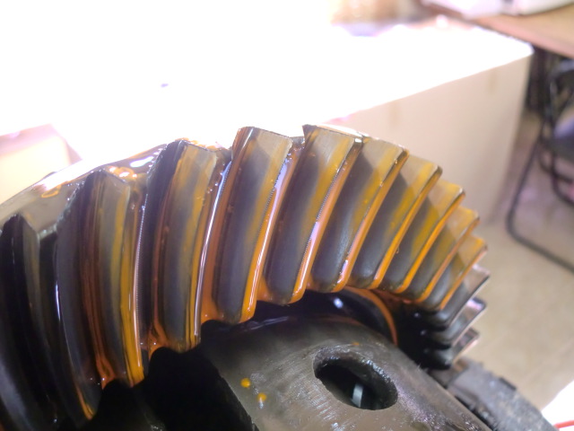 ということで、デフを降ろしてみてみることにしました。 バックラッシュは予想に反して規定値よりも小さく、歯の当たりがきついのかギアの当たり面が紫色に変色していました。