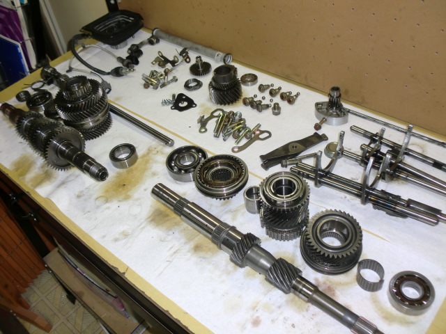 うえっち号のミッションオーバーホールが終わりました。 灯油を使って油洗したり、オイルを塗ってパーツ組んだりするものだから、手がパキパキのギトギト?ですよ。 カメラを手にするにもいちいち手を洗わないといけないので、撮った写真はこれだけ。 実は、雨が降り出す前にミッションを載せたくて(雨が降り出すとずぶ濡れになっちゃうので)、急いで組み上げたというが本当の理由だったりするのですが・・・。(苦笑) メチャクチャ渋かったシフトの入りも、スコスコ入るようになりましたよ♪