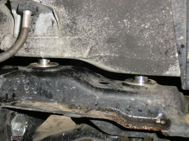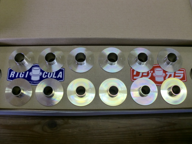 サブフレームとボディの間に前後それぞれ6個のリジカラを挟み込みます。 リジカラをボルト穴に入れるためにサブフレームをボディと水平に上げる必要がありますよ。 取り付け後はアライメントを調整するのがベストでしょう♪