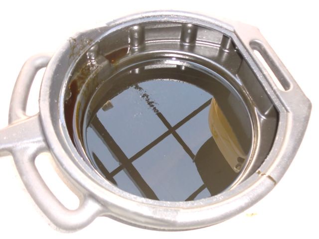 オイルを抜いてみると・・・真っ黒です。(汗) 金属片は・・・出てないです。