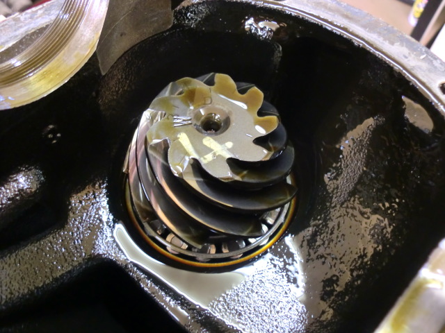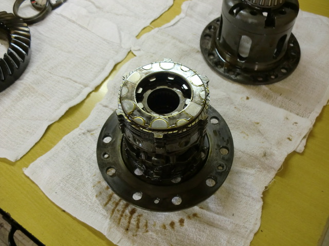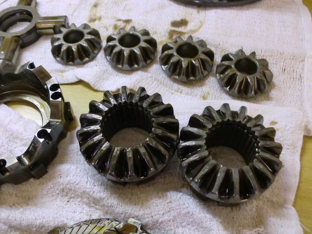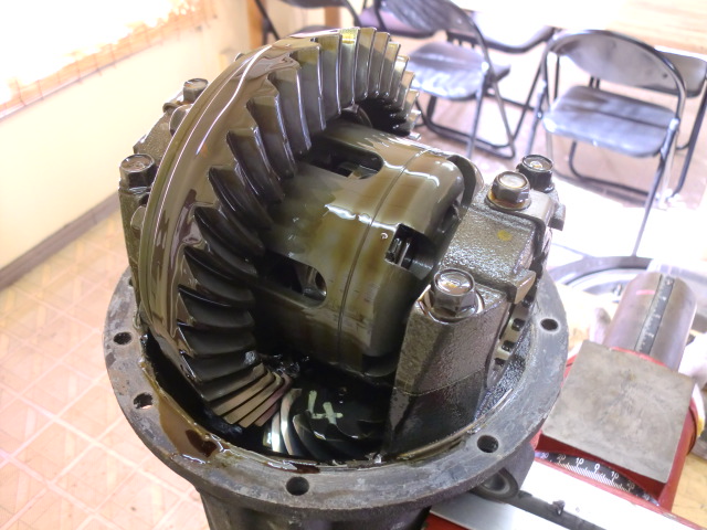 中身を覗いてみると・・・サイドベアリングキャップが飛んでいたり、ピニオンギアやサイドギアが欠けていたりはしていない様子。(オイルを抜いた時に金属片が出てこなかったので、想定内ではありますが・・・。)