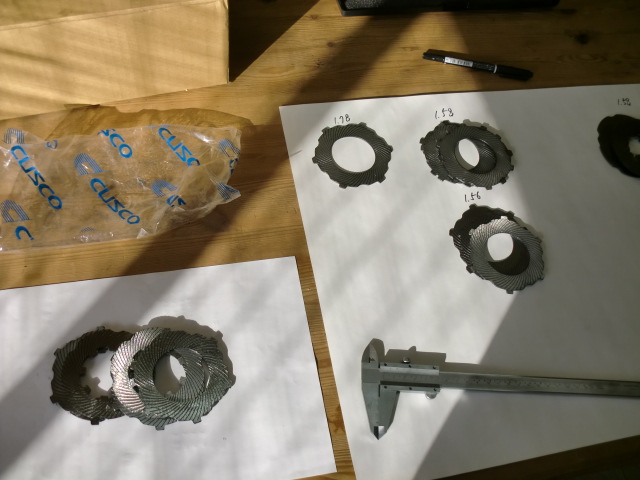 ディスクの厚みは全て同じではないので、1枚1枚計測して組み合わせを決めます。 中古のディスクだけではうまく組み合わせることが出来なかったので・・・新品のディスクも使用することにしましたよ。