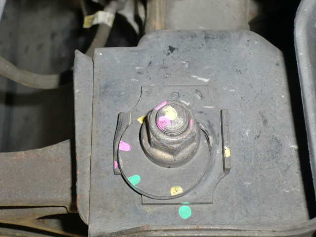 以前、発見されたフロントロアアームのカムガイド折損は、折れ曲がった部分を切り取って代替の鉄板を溶接して修理しました。 またカムボルト(アジャストボルト)の交換もオーダーされたので一緒に交換しておきましたよ。