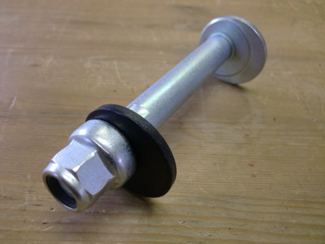 カムボルトは外すとこんな形になっていて、ボルトを回すことでロアアームの突き出し量を変化させ、キャンバーとトーの値を変化させます。