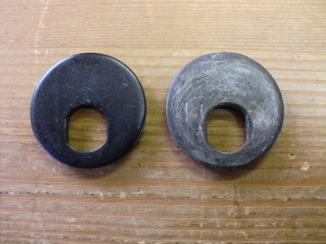 プレートにはこのような穴が開いていて、ボルト側のカムと同調して動くようになっていますが・・・長期間使っているとこの穴が変形してきてしまいます。 こうなると、アライメントがうまく調整できないばかりか、すぐにずれてしまう原因にもなります。 アライメントを調整する機会があったときに、点検してもらうと良いかもしれませんね。