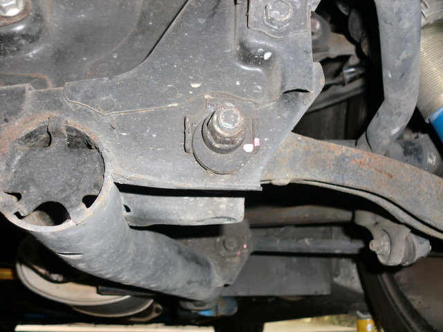 「何故(左側だけ)キャンバーが付けられないのか?」を明らかにするため、サブフレームの歪みやアームの曲がりなどをチェックしてみたのですが・・・決定的といえるような原因を発見することは出来ませんでした。。。(涙)