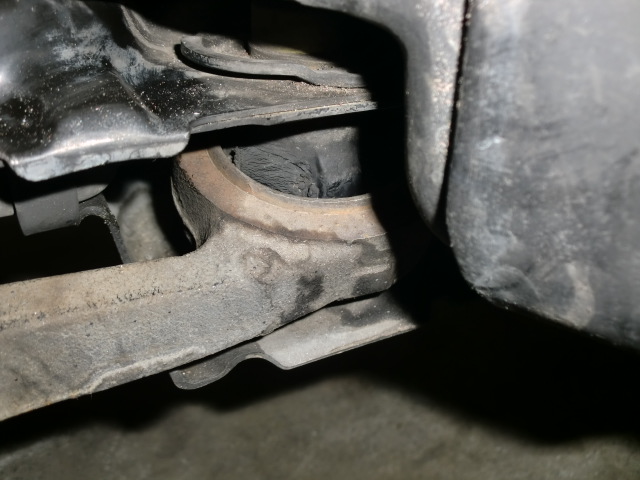 左右のフロントロアアーム・コンプライアンスブッシュの切れ