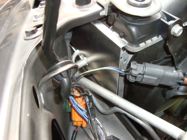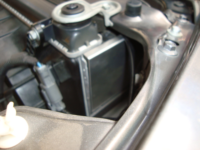 ラジエターの脇から滑り込ませるだけなので簡単に装着できます。 ラジエターのアッパーマウントを外して、ラジエターをずらせばより作業が楽に行えます。