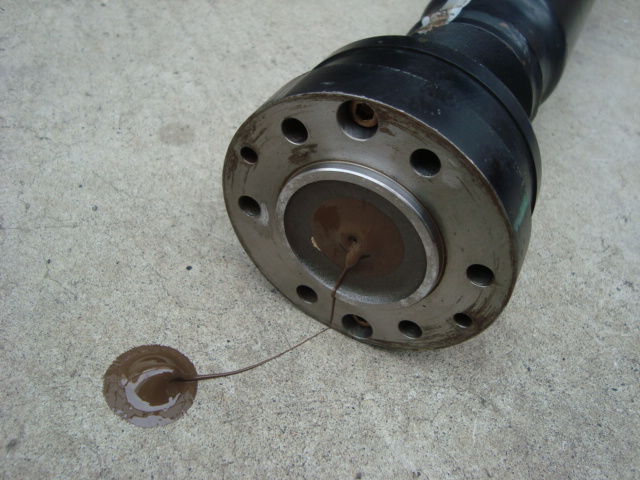 菅○さんが気にしていたプロペラシャフトは、フランジがグニャグニャでした。 さらにグニャグニャしているうちにグリスが・・・。(汗) これは持ち込まれた中古品に交換です。