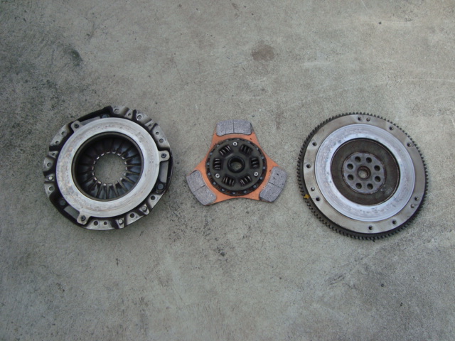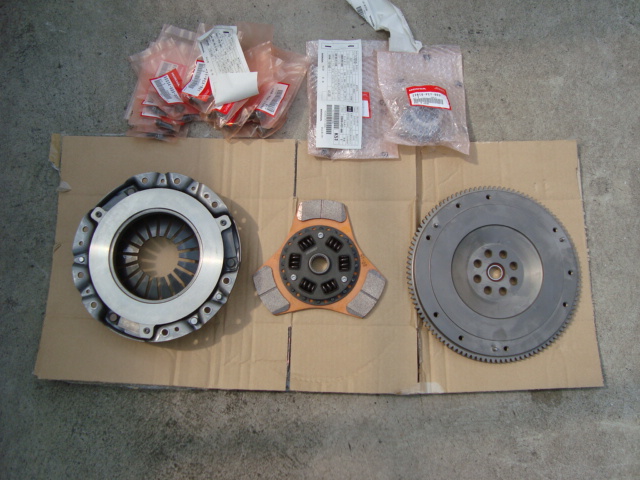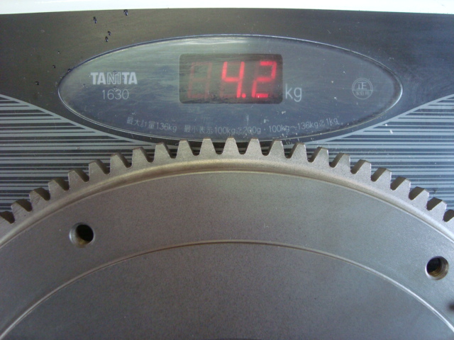 これから取り付ける無限クラッチカバー&ディスクとArrows軽量フライホイール。 Arrows軽量フライホイールの重量は4.2㎏!! レスポンスアップはもちろんのこと、2.2㎏の軽量化にもなりました♪(笑)