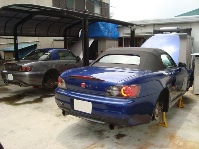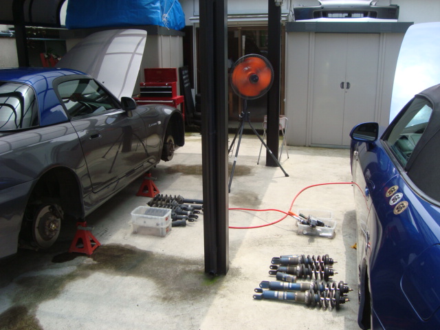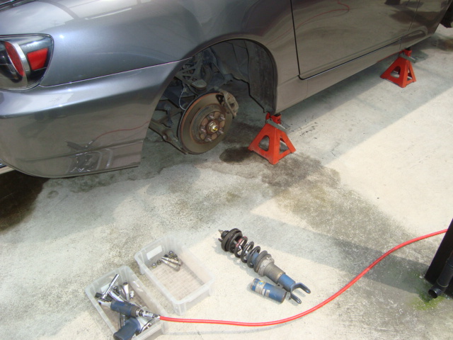 ってことで・・・旧イッチー号から新イッチー号へ、パーツの移植作業をしますよ。 まずはじめに、サスペンションの移植から・・・。 作業中、S2000のウィークポイントであるコンプライアンスブッシュとアッパーアームブラケットの状態を確認。 切れや剥がれもなく、コンディションはグッド!!でしたよ。