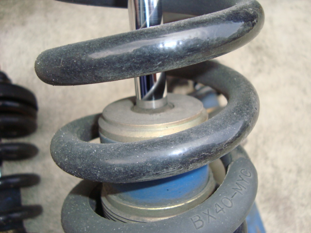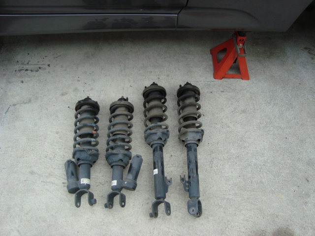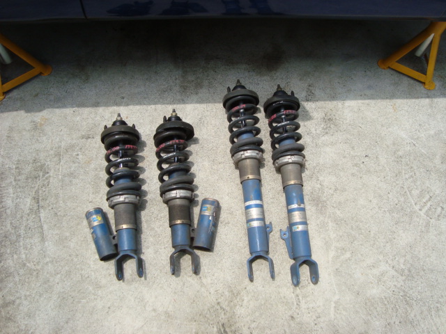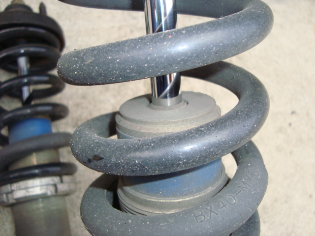取り外した車高調の右リアが抜けちゃってますよ。(涙) 漏れたオイルに砂埃が付いて真っ黒になってました。。。