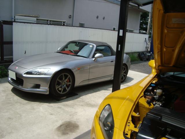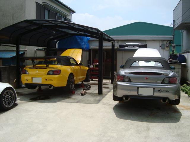 け~すけ号に付いている純正エキマニとshinohe"号に付いている社外エキマニを交換することになったということで・・・本日の作業、開始です!!