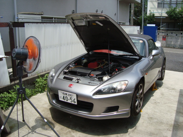 純正エキマニを取り付けてshinohe"号は作業終了。 それにしても、今日も暑い!! 走って来たばかりとうこともあり、作業中の暑さは相当なものです。(滝汗) 水分を補給しながらの作業も限界ギリギリですよ。(萎)