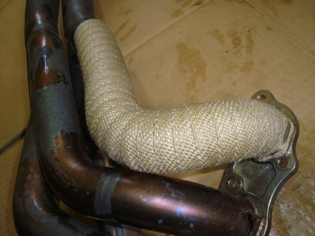 ってことで、社外エキマニのサーモバンテージ巻きは涼しい室内で行いました。(憩)
