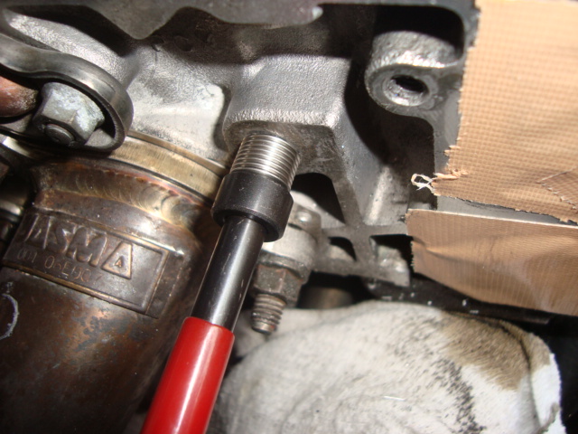 以前にもブラケットを固定するボルトが折れてオイル漏れが発生したため、強化ボルトを入れて対策をしたのですが・・・スチール製のボルトをアルミ製のエンジンにねじ込むため、あまりトルクを掛けられず剛性を確保できなかったようです。 そもそも、エンジン本体とVTECソレノイドの間にブラケットを挟むこと自体、無理があるような気がするのですが・・・。(苦笑)