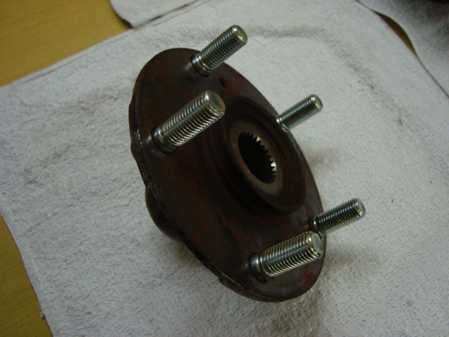 ここ最近、「お知らせ」ばかりが続いていましたが・・・仕事ネタに戻りますよ。(笑) 先日の日曜日、作業をしていたけ~すけさんから「ホイールナットが緩まないんですけど~。」という電話があり、Arrowsで点検したところハブボルトのネジ山が潰れているのを発見!! ハブベアリングから「パキンッ!!」といった異音も出ているので、一緒に交換することにしました。 火曜日にサーキットへ走りに行くということなので、月曜日までに仕上げますよ。