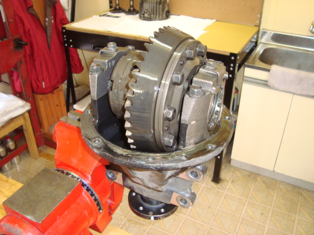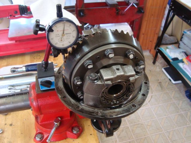 イニシャルトルクをチェックしたデフにリングギアを取り付けたら、キャリアに載せて歯当たり&バックラッシュの調整をします。