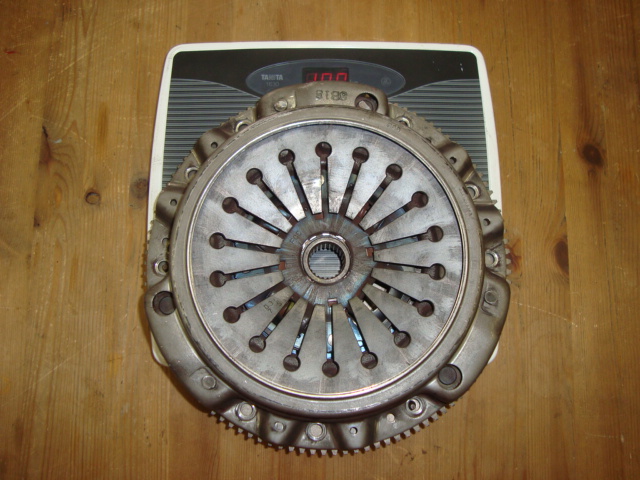 ↑これが「EXEDY CORBON-D」です。 気になる重量は・・・フライホイール、クラッチディスク、クラッチカバーを合わせて11.2㎏でした。