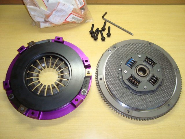 今日はSam号のクラッチを取り付けましたよ。 ブローしたクラッチを取り降ろしてからというもの、どこのクラッチを入れようか散々悩んだSamさんでしたが、最終的に「EXEDY CORBON-D」に決定したと連絡を受け、本日取り付けとなりました。