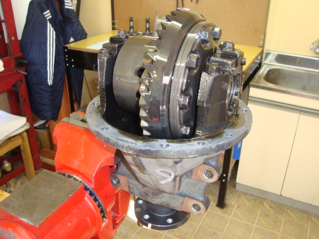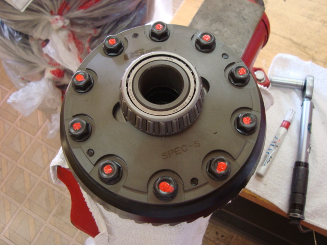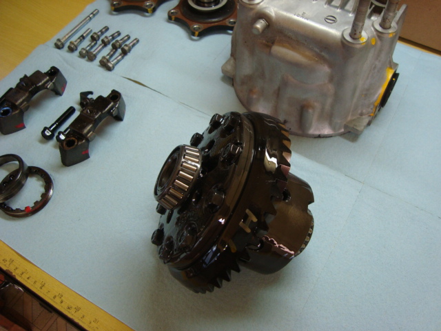 サイドベアリングを圧入したスーパーロックLSDに、リングギアを付け替えます。