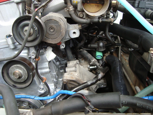 エンジンは積んだまま、オルタネーター、エアコンプレッサーを外していきます。 エンジンが降りている時とは違い、作業性が悪いため時間が掛かります。(涙)
