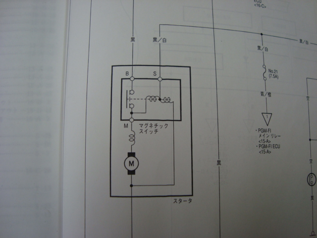 マニュアルで確認してみると・・・確かにマグネチックスイッチが怪しい。。。 ってことで、スターターモーターを取り降ろすことにしましたよ。