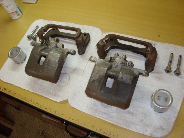さてさて・・・本日、もとはれ号のブレーキオーバーホールキットが届いたので、作業を開始しましたよ。 で、降ろしたブレーキキャリパーがコレ↓