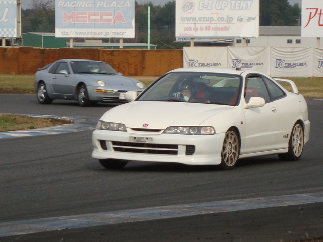 で、土曜日・・・しのいでの練習走行は午後からということなので、午前中はお客さんの走りを見に筑波へ行きましたよ。 雨が心配でしたが、午前中は晴れていてコンディションもまずまず。