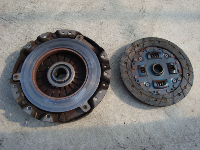 降ろしたクラッチカバーとディスク。 ディスクがまだ使えそうなのは、いつものことですね。 S2000はこの程度でクラッチが滑り始めてしまいますね。 乗り方にもよると思いますが・・・距離にして6万キロくらいで滑ってしまうS2000が多いようです。