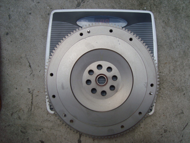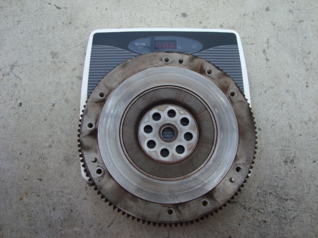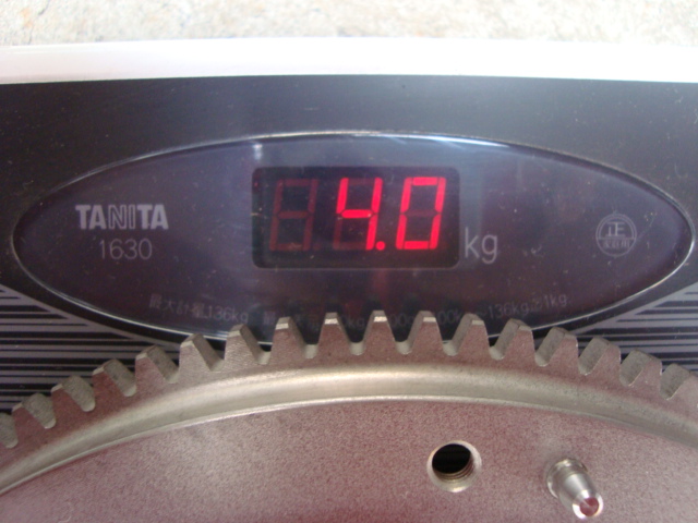 フライホイールも軽量タイプに交換するため取り降ろしました。 重量は・・・9.6㎏!? 純正ってこんなに重かったかな???(汗)
