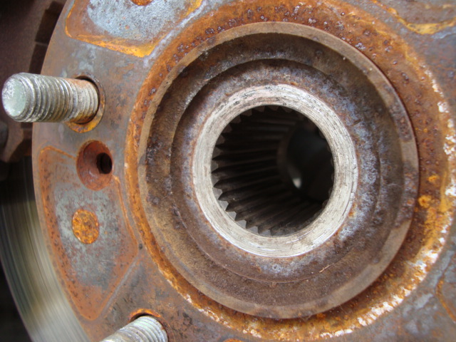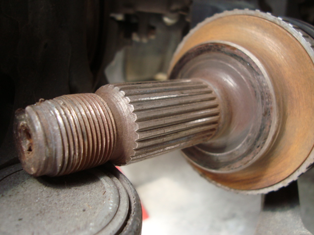何をするかというと・・・スプライン部分のサビを落とします。 理由は定かではないのですが、この部分にサビが蓄積すると周期的に「キッキッキッ!!」「キャっキャッキャッ!!」という音がするんですよ。 今までも同じ症状のエスが何台かありました。