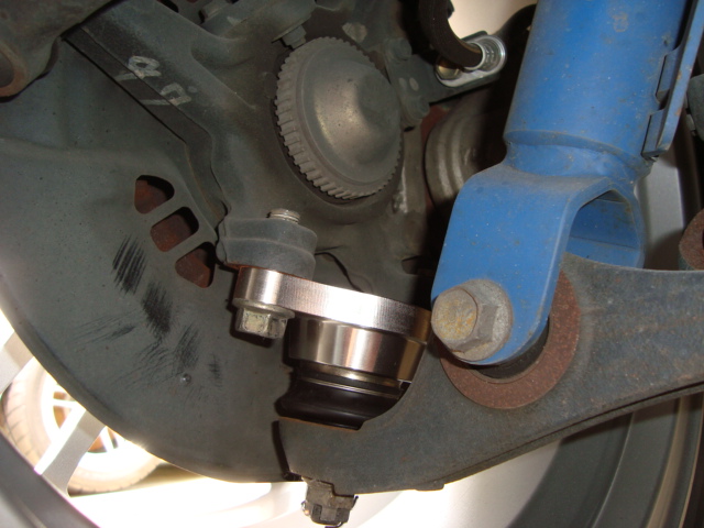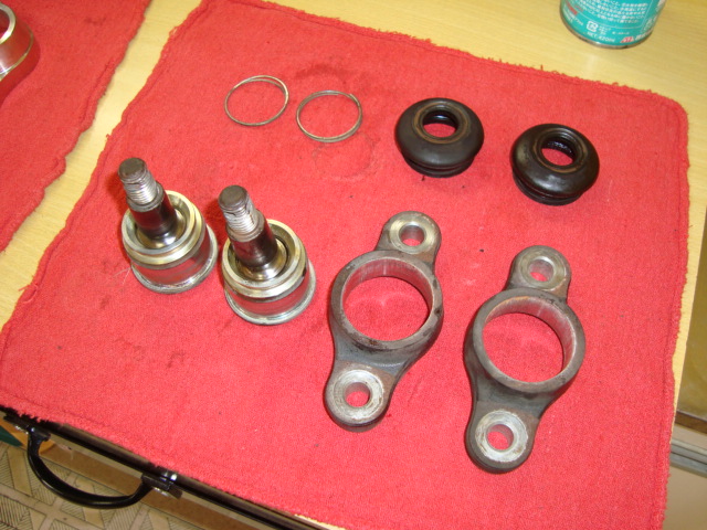 け~すけ号の続きですよ。 フロントのキャンバーを増やすために、純正のボールジョイントを抜いて、Arrowsキャンバージョイイントベースに打ち込みます。