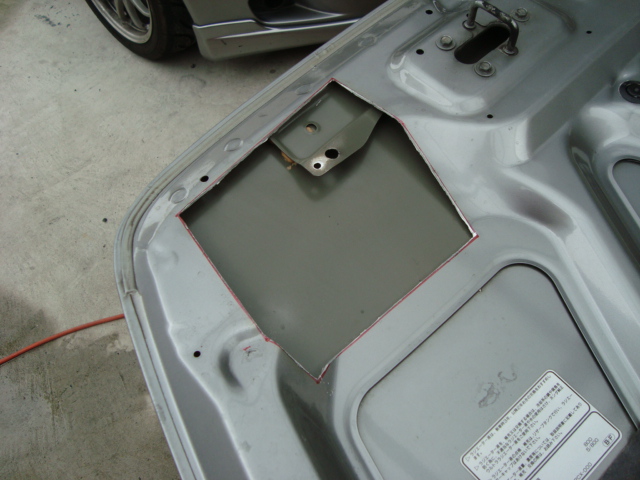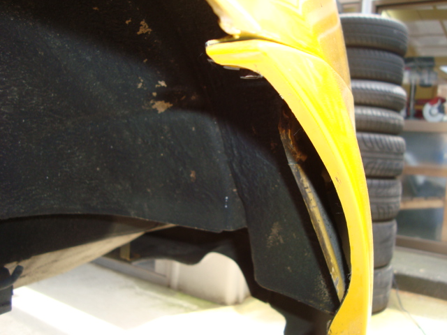 ローオフセットのホイールを履かせるために、リアバンパーを加工します。 干渉する部分は、アライメント値やタイヤサイズ、タイヤの銘柄によっても違ってくるので、大まかに削って走りながら様子を見ます。