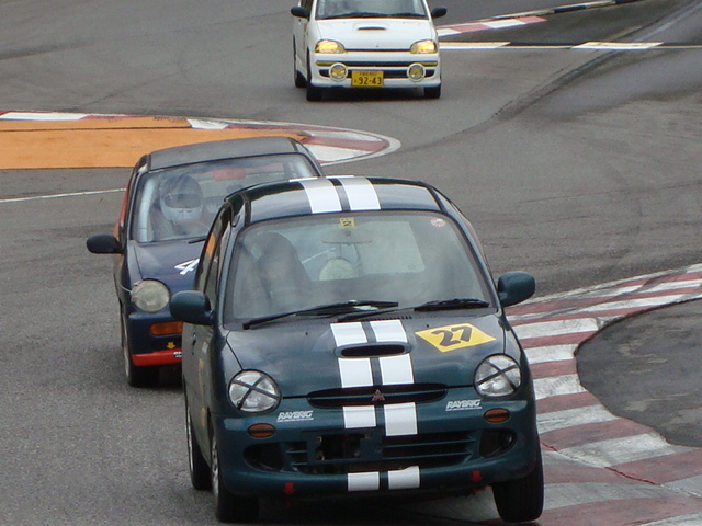 21日(日)ヒーローしのいサーキットで行われた「K-car intercup 第3戦・4時間耐久レース」に、“レーシング代車ミニカ”でお客さんと一緒に参戦してきました。 雨でコース上に川が出来るようなコンディションの中、予選総合5位(15台中)という良いポジションでスタート。 天気も回復してきて、タイムもアップ!! 順調に周回を重ねて・・・と思いきや、スタートから2時間10分後、ミッションブローによりリタイヤとなってしまいました。。。(涙) 今回も表彰台に手が掛かっていただけに、悔やまれる結果となってしまいました。 次回のレースは7月下旬。 次こそは、みんなで表彰台に上りましょう!!スポンサードリンク