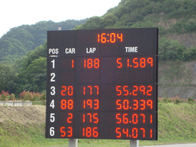 スタートしてからは、トラブルもなく順調に周回を重ねていきます。 各ドライバーもミニカに慣れてきたようで、ラップタイムも上がってきました。 レース後半、クラス3位にまで順位を上げるものの、最後のドライバーチェンジでピットインしたところを後続車に抜かれてしまい、そのままチェッカー。